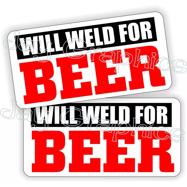 Unbranded/Generic (2) WILL WELD FOR BEER Funny Hard Hat Stickers Welding Helmet Decals Welder Rod