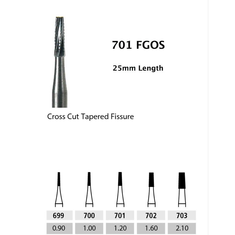 pack contains 10 - #701 FGOS Taper Fissure Cross Cut Surgical Burs
