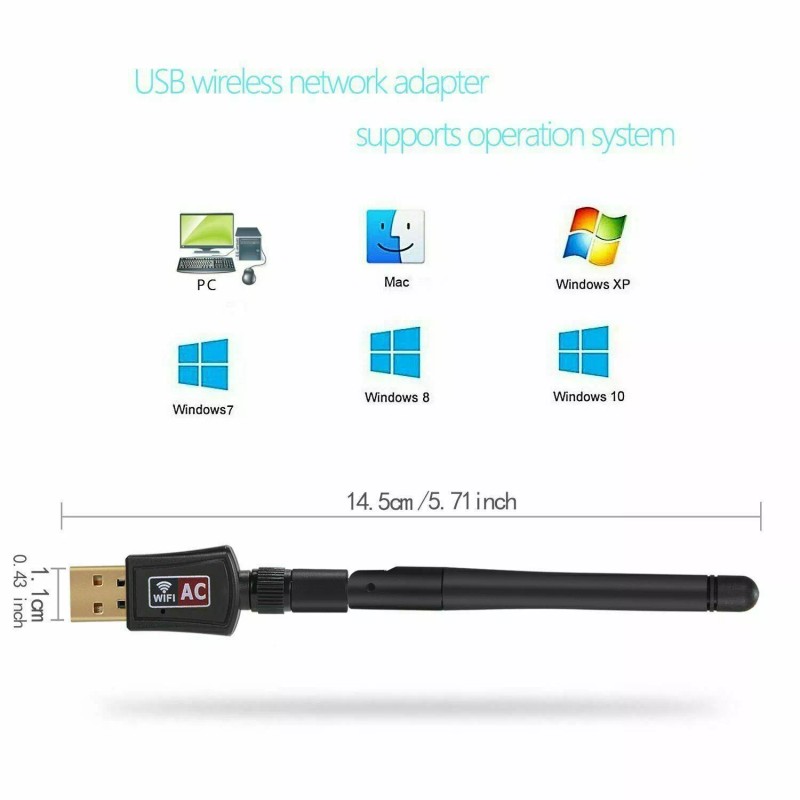| AC600 Mbps Dual Band 2.4/5Ghz Wireless USB WiFi Network Adapter w/Antenna 802.11ac,802.11a,802.11n,802.11g, 802.11b |