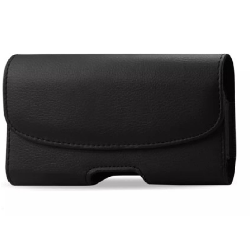 BLACK LEATHER HORIZONTAL POUCH CASE WITH BELT CLIP