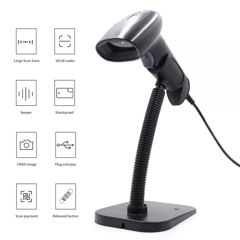 Unbranded/Generic Handheld Wired USB 1D 2D QR Barcode Scanner Handhold Scanner Gun with Stand C8B6