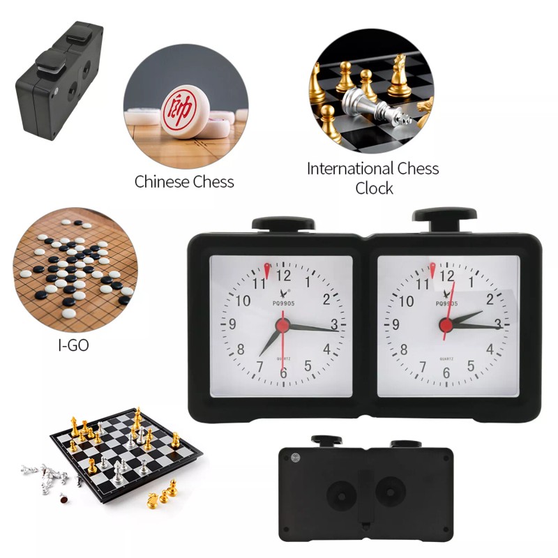 The game clock adopts a mechanical structure with a timing start button. Easy Operation.Press the left button, left timer stop timing and right timer begin timing, vice versa.