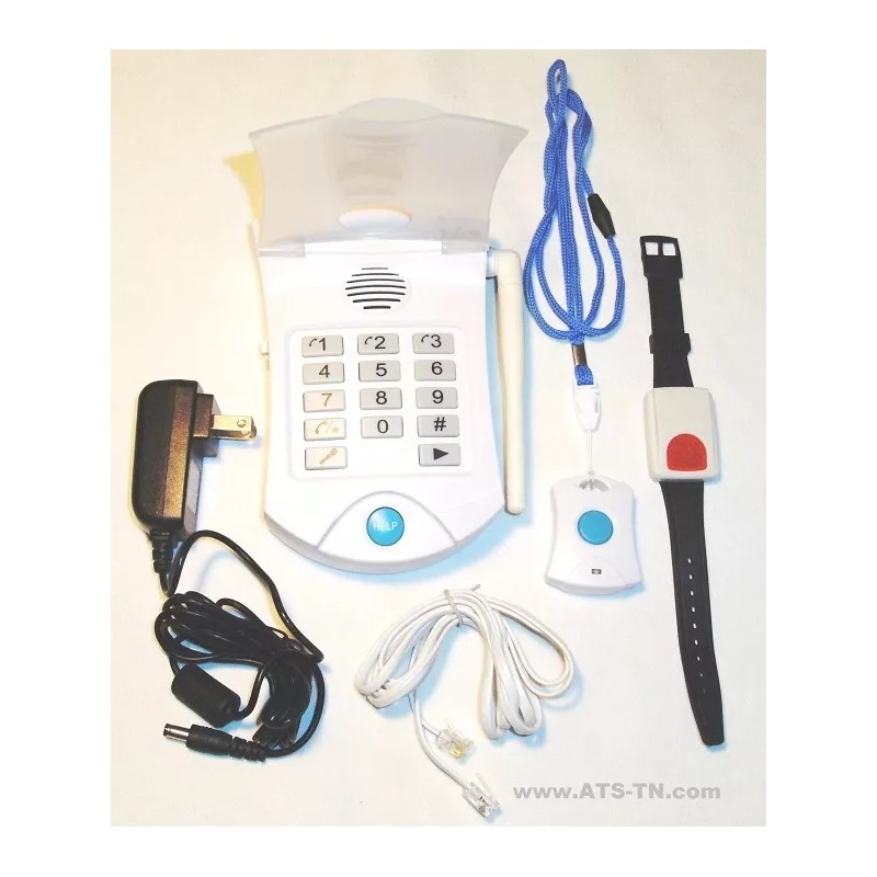 Other Features/Specifications: - Wall Mountable (2 screws included) - Capable of dialing a 16 Digit Telephone Number. - Big Buttons for Programming. (Great for seeing the numbers during the easy setup) - Battery Backup for up to 12 hours (Uses 4 AAA batteries - not included) (You can still call out in the event of a power outage) - In-Use Indicator (Visually shows you that the system is operating) - Low & No Battery Indicator (You will know when it is time to change the backup batteries) - 2 Way Speakerphone for clear 2 way voice communication between the console and the receiver of the call - External power: DC 6V - 110v-220VAC input adapter (Included) - Panic Button frequency: 433.92 MHz (Will not interfere with any other electronics or pacemaker) - Panic Button range: 100 Feet from base (depending on environment) - 2-Way Speakerphone range: several rooms away (depending on environment) - Panic Button batteries: 23A 12V Alkaline battery (Batteries included for both the necklace and wrist panic buttons) - Size: Necklace Panic Button- 2 inches long (top to bottom), 1.25 inches wide (side to side), 1/2 inch thick - Size: Wrist Panic Button- 1.5 inches long (top to bottom), 1.25 inches wide (side to side), 1/2 inch thick - Size: Wrist Strap is 9 inches long - Weight: Panic Buttons weigh less than 1 oz. each with the battery installed (these are very light panic buttons) - Power ON/OFF switch control (Turn unit off when away from home or traveling, or to cancel an alert) What if you have a stroke and cannot speak? This system has the answer. You record a message into the unit. When the system is activated it then plays the recorded message to the person receiving the call letting them know you have an emergency. It speaks for you! -Speakerphone- the called party presses any key to talk and hear the caller using the built in speakerphone. -Answering machines will not fool it. The alert can also be cancelled by sliding the Power switch to Off on the console. Help Dialer 700 FAQ: