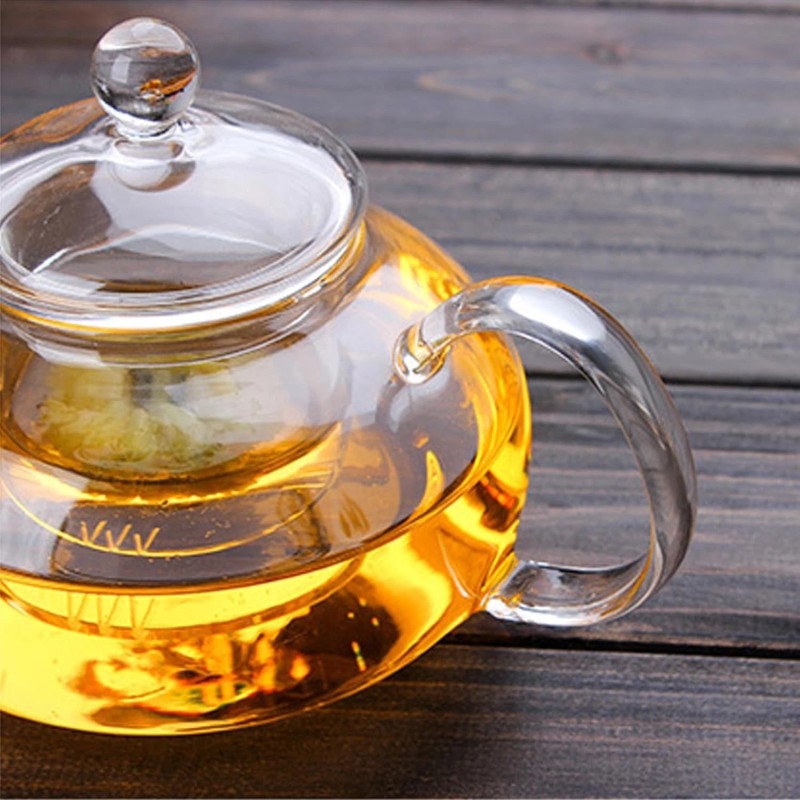 Our tea pots with infusers for loose tea and tea bags is made with lead-free borosilicate glass to give you a clear view of your boiling water on the stove.