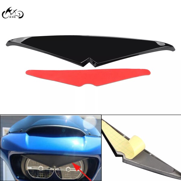 This sleek one-piece headlamp eyebrow eyelid sticker designed with inverted triangle look like olecranon,adds a clean custom look to the headlight of the Road Glide models.