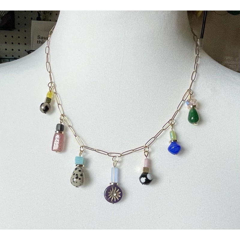 Unbranded Gold Paperclip Necklace With Beaded Charms