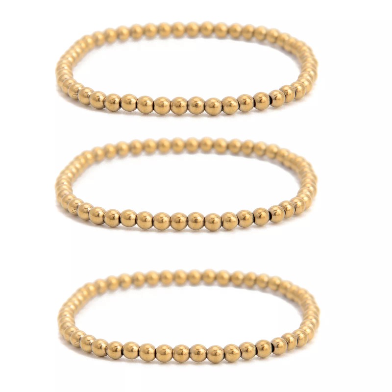 Unbranded Gold Plated Hematite Smooth Round Beaded Bracelet 4mm 7.5'' Length 3 PCS/ Set