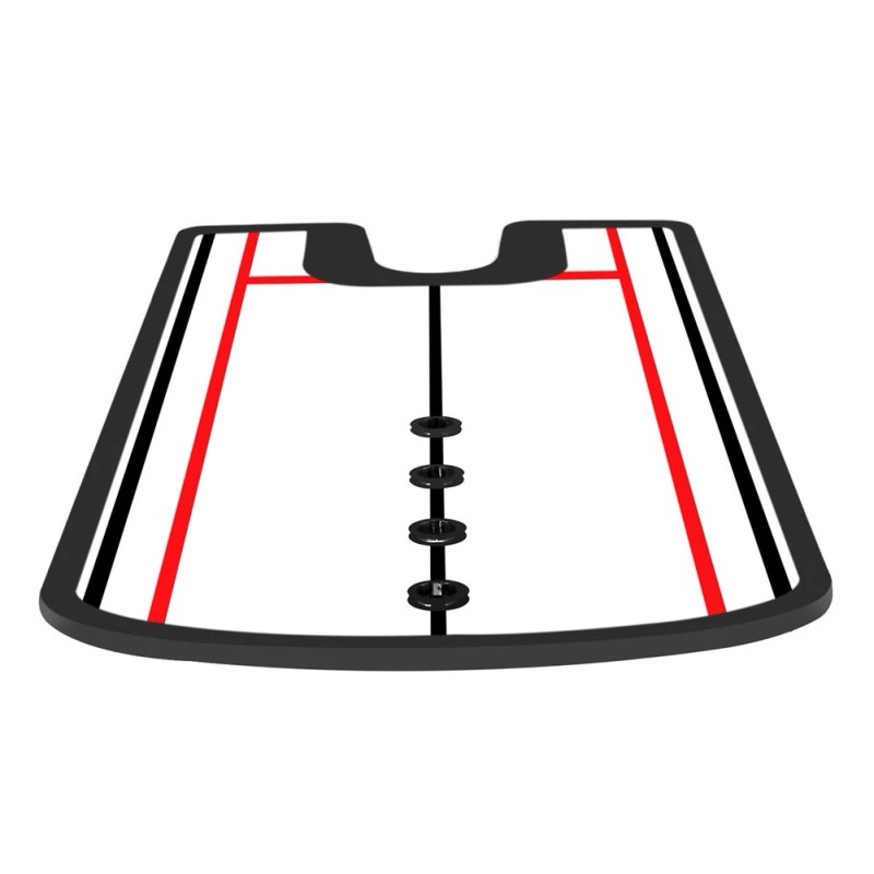 Improve Putter Face AlignmentUsing your eyes align the putter on the outline of mirror. Have your eyes parallel to the lines. This is precision alignment to achieve the best putt. Where your eyes go your shoulders go too, so when achieving a perfect putt it is important to have your eyes square on the mirror which ensures your shoulders are too. |