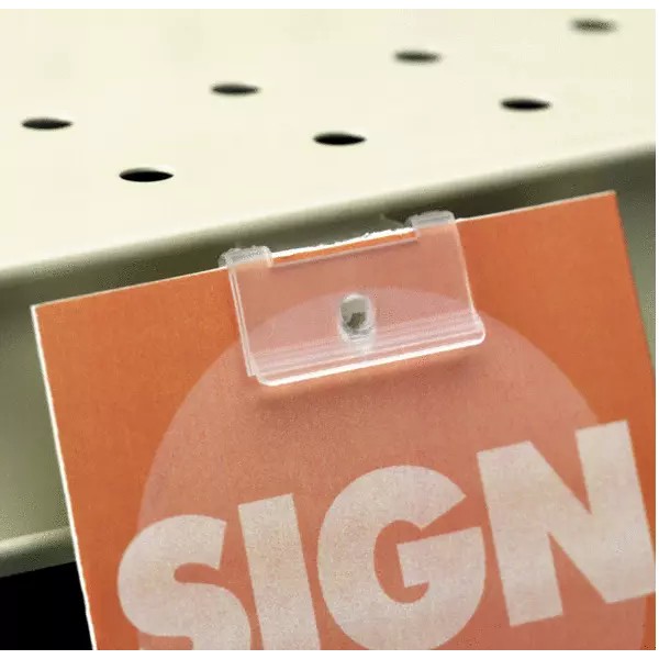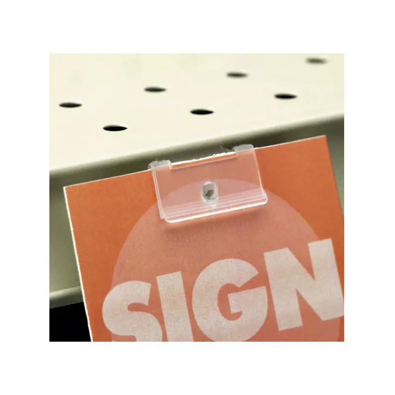 These shelf clips-sign holders puncture and hold signs in a flat-flush position on your price channel molding.