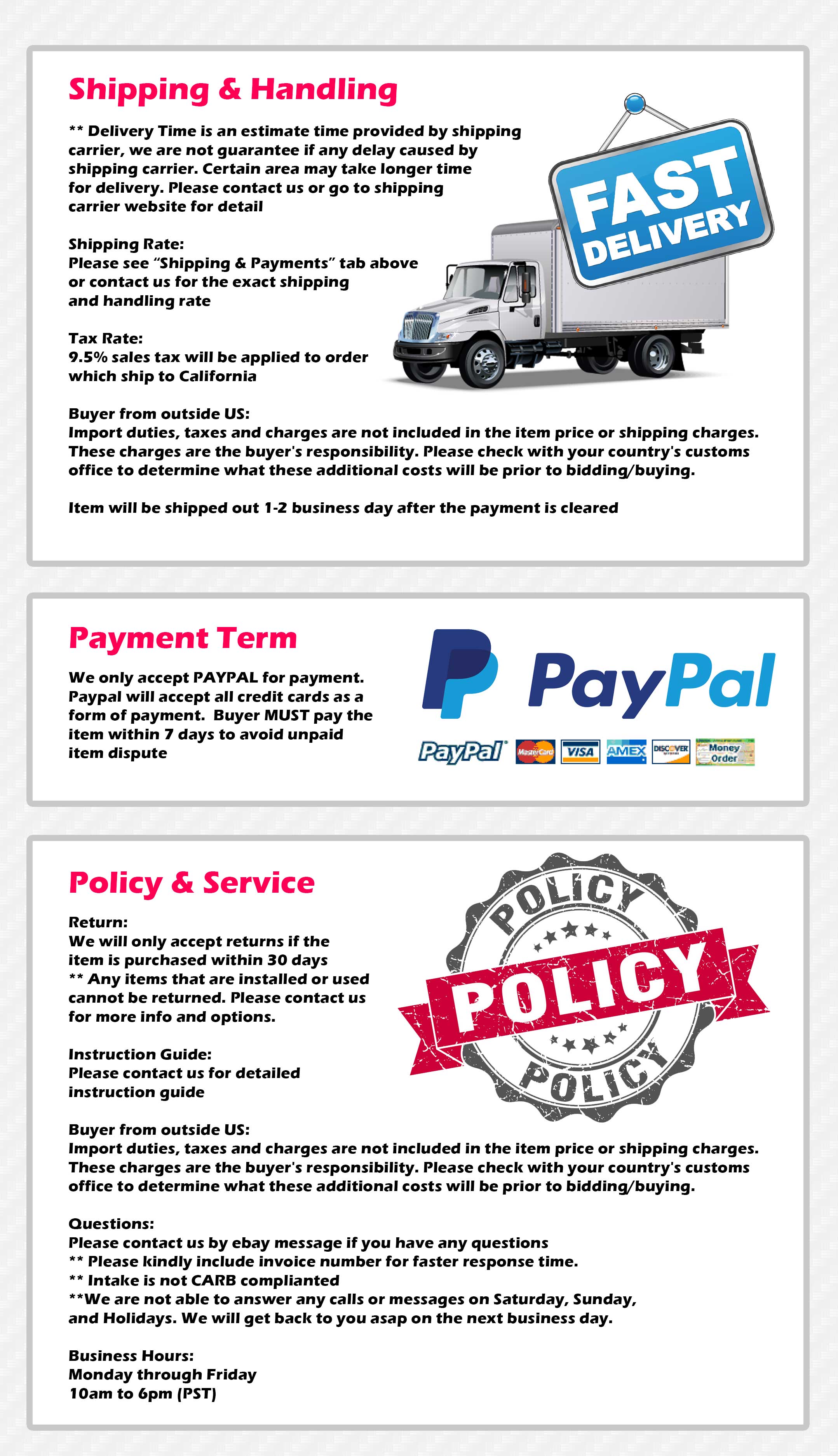 Please read our policy carefully before making a purchase.