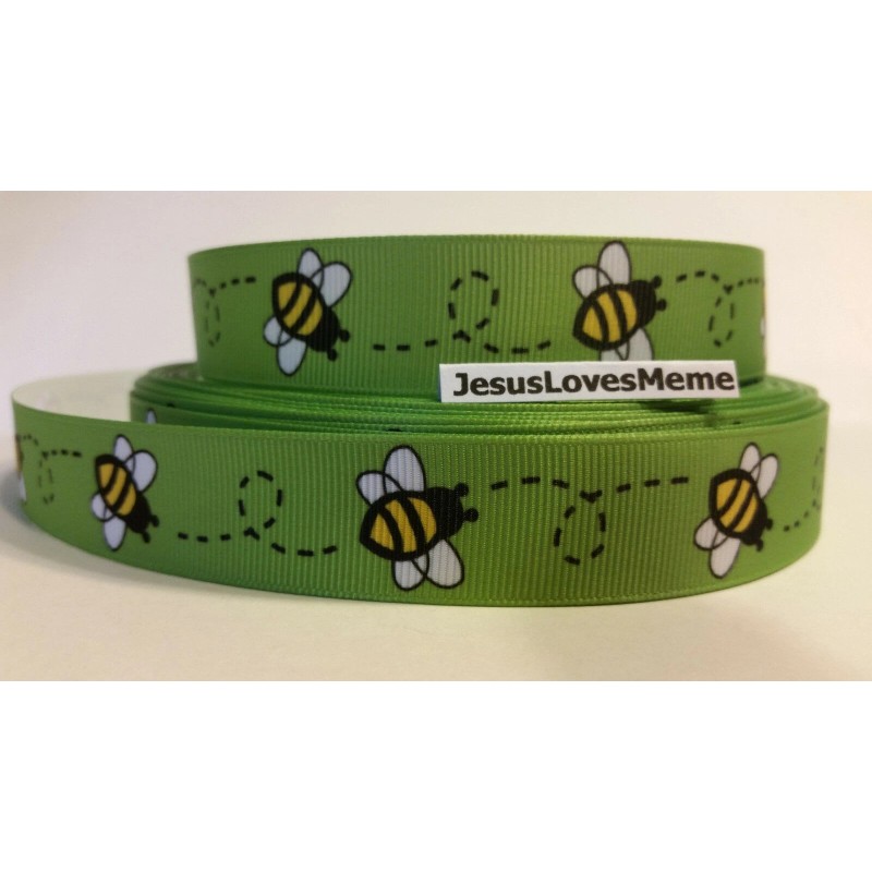 Unbranded Grosgrain Ribbon Large Bumble Bees on Lime Green Bee Hive Honey Pollination 7/8"