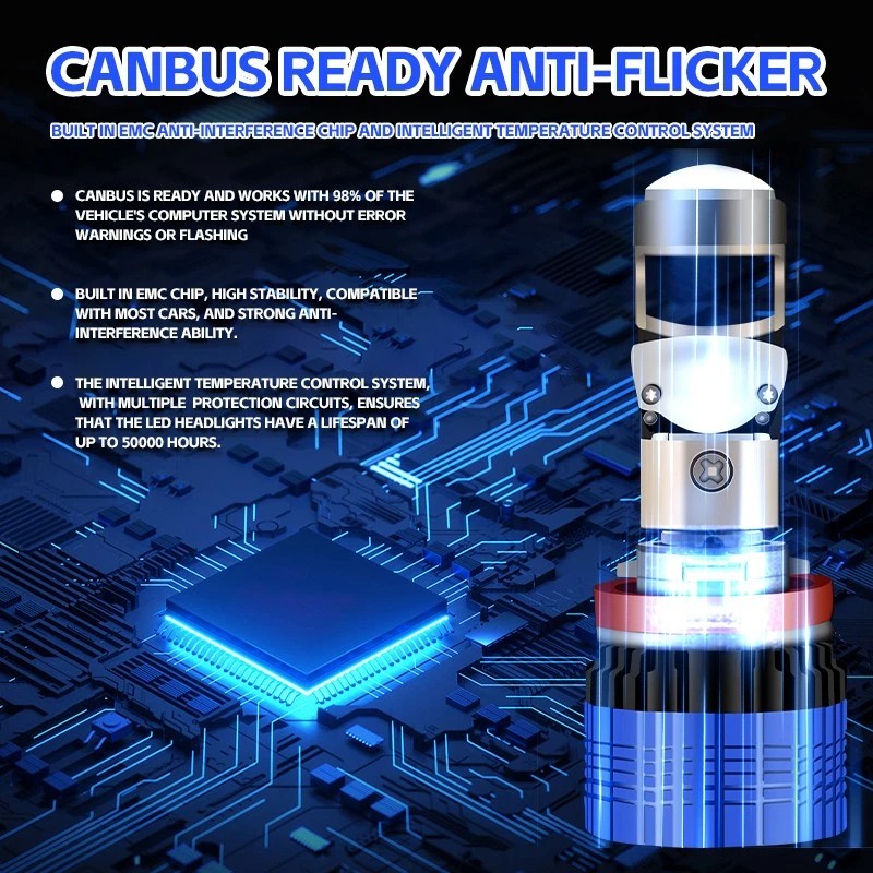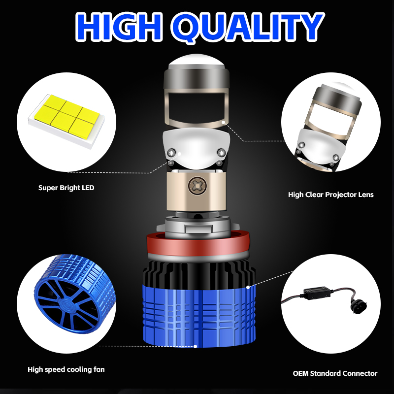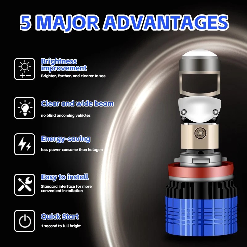 Unbranded H11 Projector Lens LHD LED Headlight Bulbs Kit Low Beam Bulb Super Bright 6000K