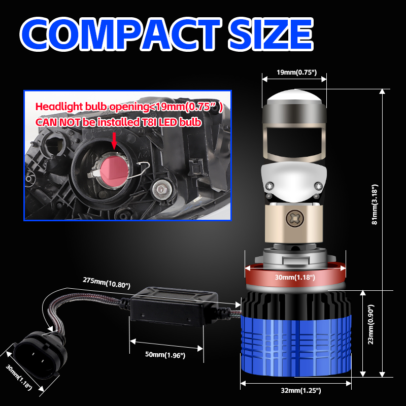 1, T8I mini projector lens bulb only fit for the which headlight opening diameters more than 19mm(0.75").
