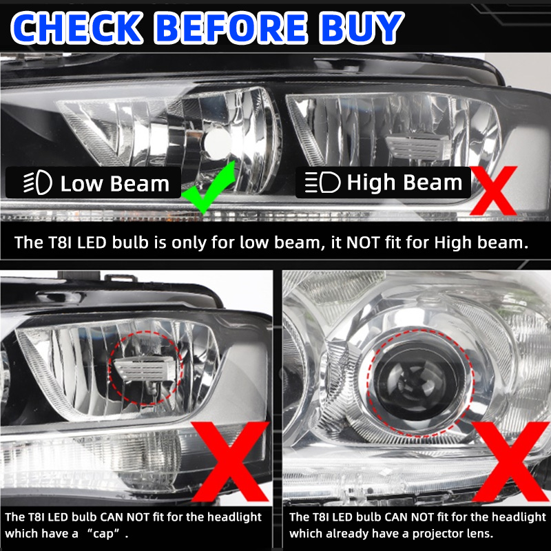 1, T8I aftermarket LED bulb is designed to easy installation, it's can be directly installation to the car headlight without modify.