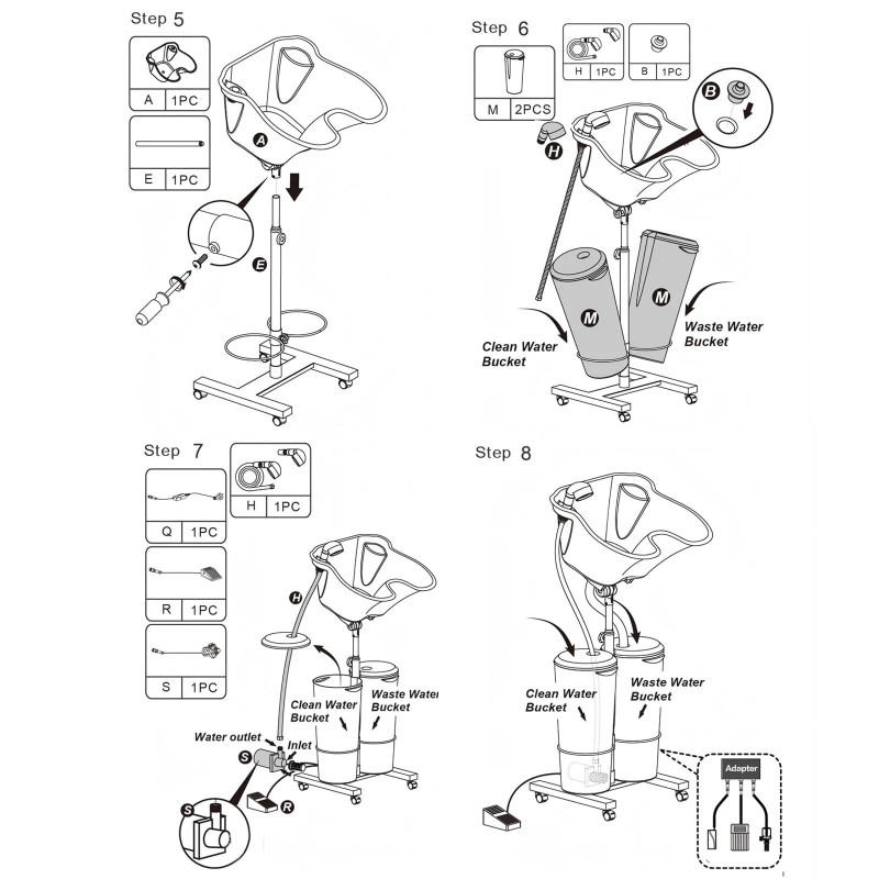 Unbranded Hair Washing Sink Height Adjustable Salon Shampoo Basin 2 Drain pipes
