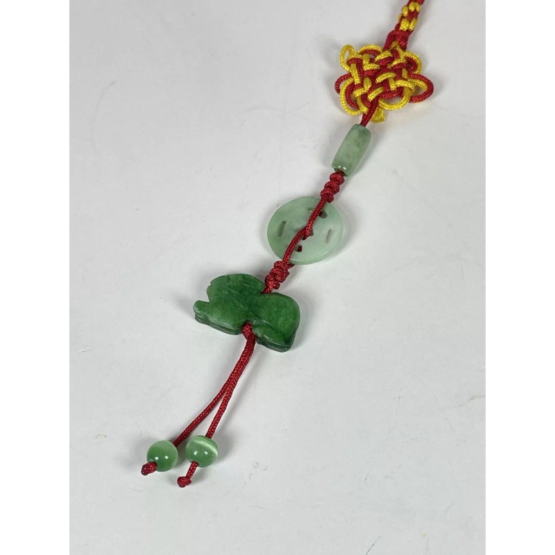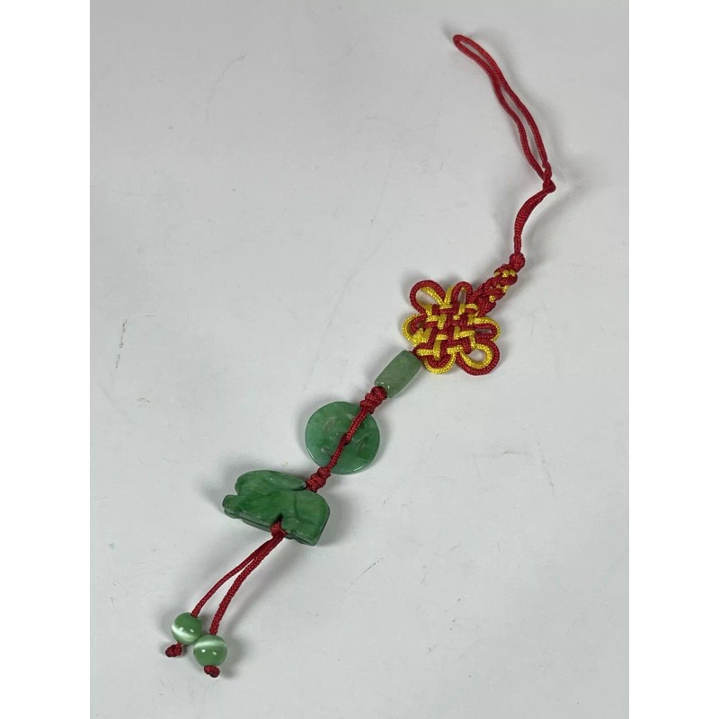 Unbranded Hand Carved Natural Jade Chinese Zodiac Rabbit Pendant Knot CellPhone Car Charm