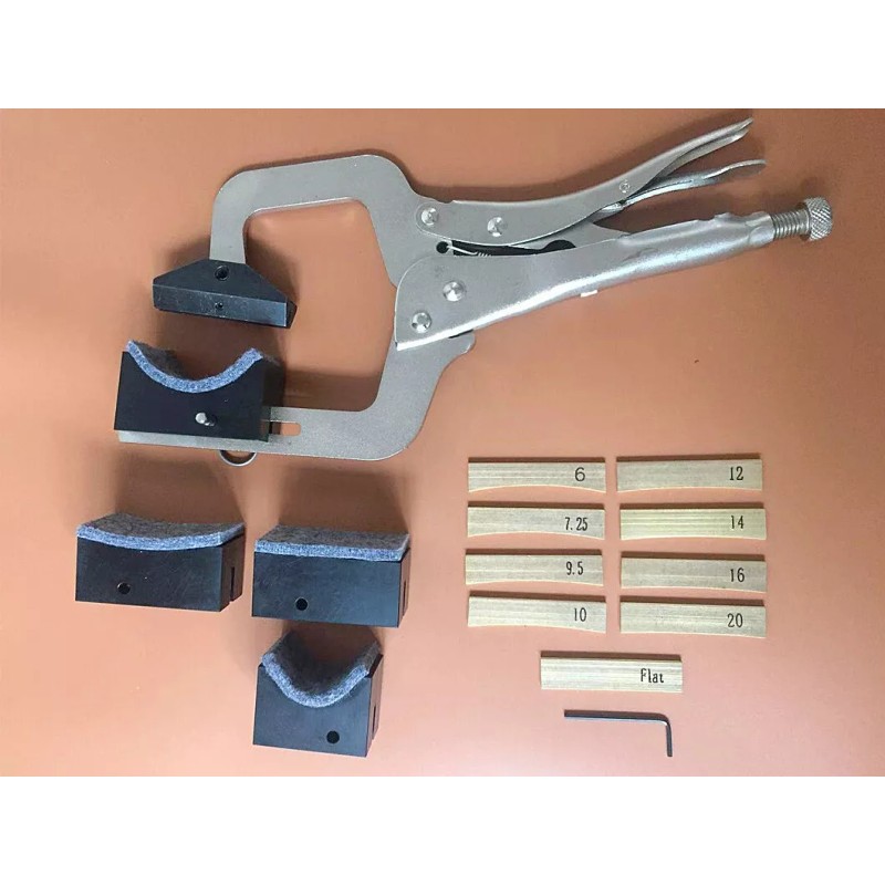 Unbranded Hand Held Fret Press, w/ 9 Radius Inserts + 4 Neck Supports, For Any Neck