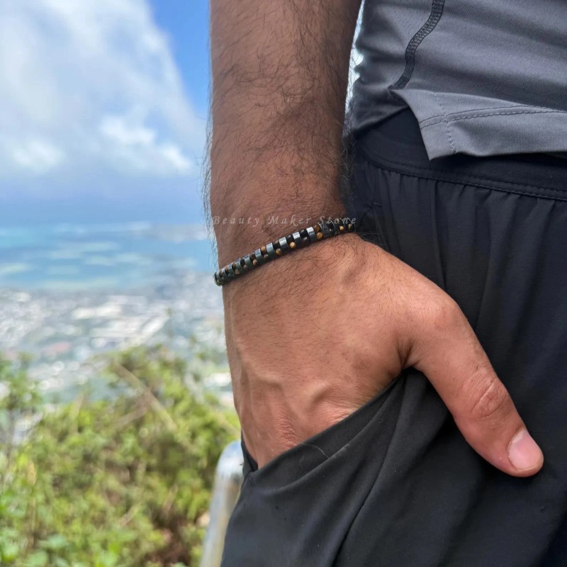 Unbranded Handcrafted Tiger's Eye & Hematite Bracelet,Heali