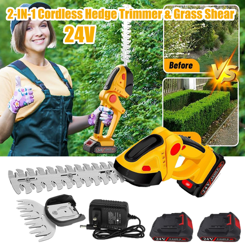- 🌳 2pcs Rechargeable Battery: Grass cutter hedge shear built-in 2PCS rechargeable high-capacity 24V lithium-ion battery and a fast charger,cordless grass trimmers can be fully charged in 1.5 hours, charging time is shorter, and a powerful replacement battery has a longer life, also make your work more convenient and efficient.