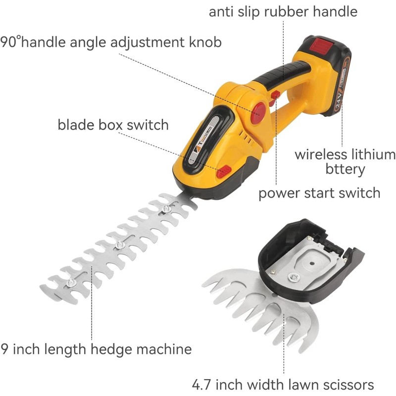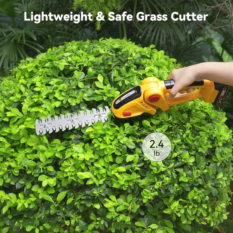 - 🌳Hedge Trimmer & Grass Shear: 2-in-1 handheld lightweight electric hedge trimmer with a 90° adjustable working head, you can set it exactly where you want it, perfect for mowing grass, branches, gardens, shrubs, green belts, lawns, weeds.