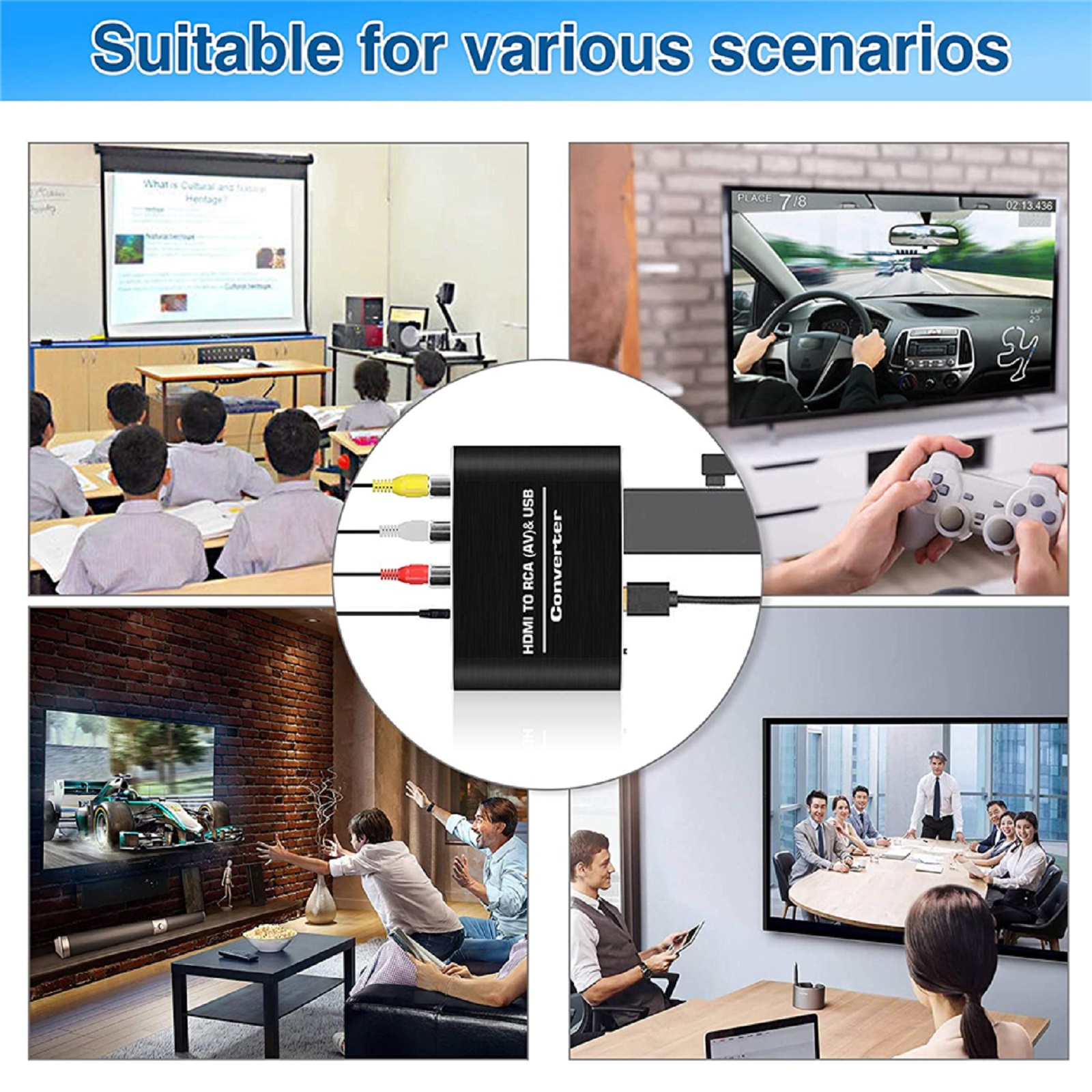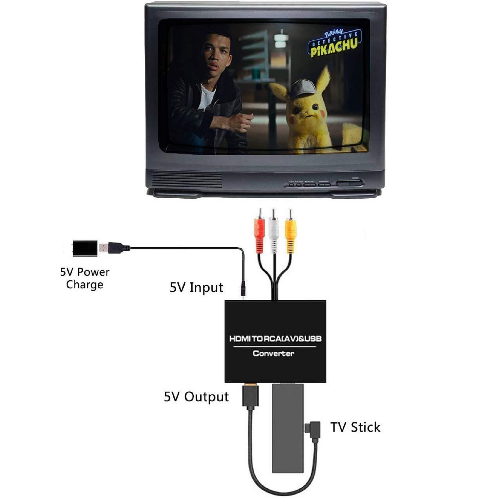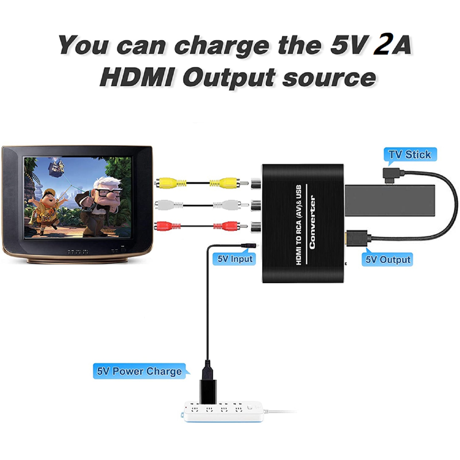 4. 5V power output: This HDMI to RCA converter has a 5V USB power output power interface, which can be used to power 1080P HDMI TV stickers. It has an alloy casing, a good size, no need to install a driver, plug and play, and is portable and flexible.
