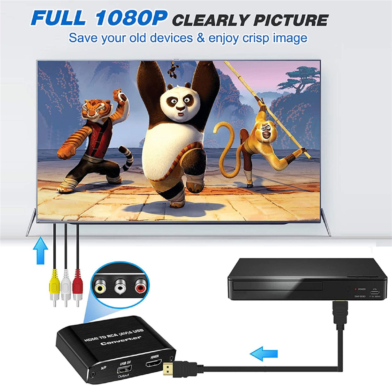1080P HDMI to RCA Converter AV/CVSB L/R Video Box Support NTSC PAL