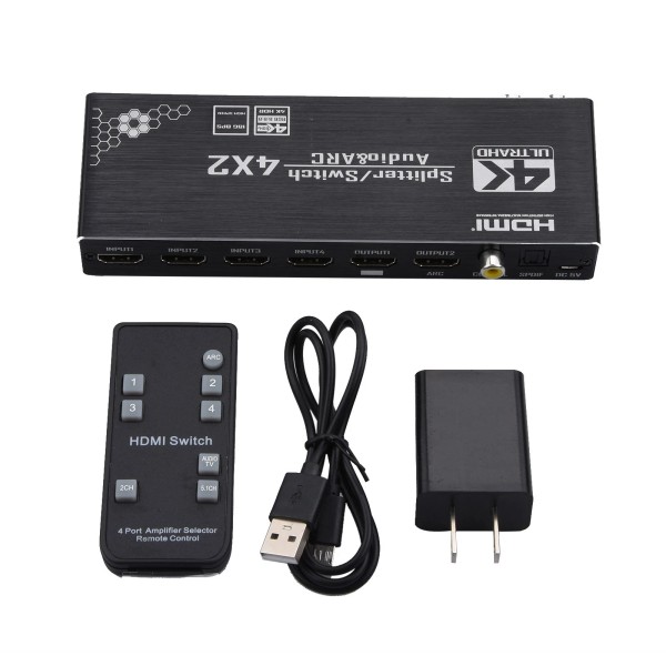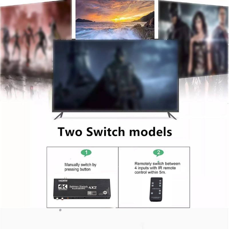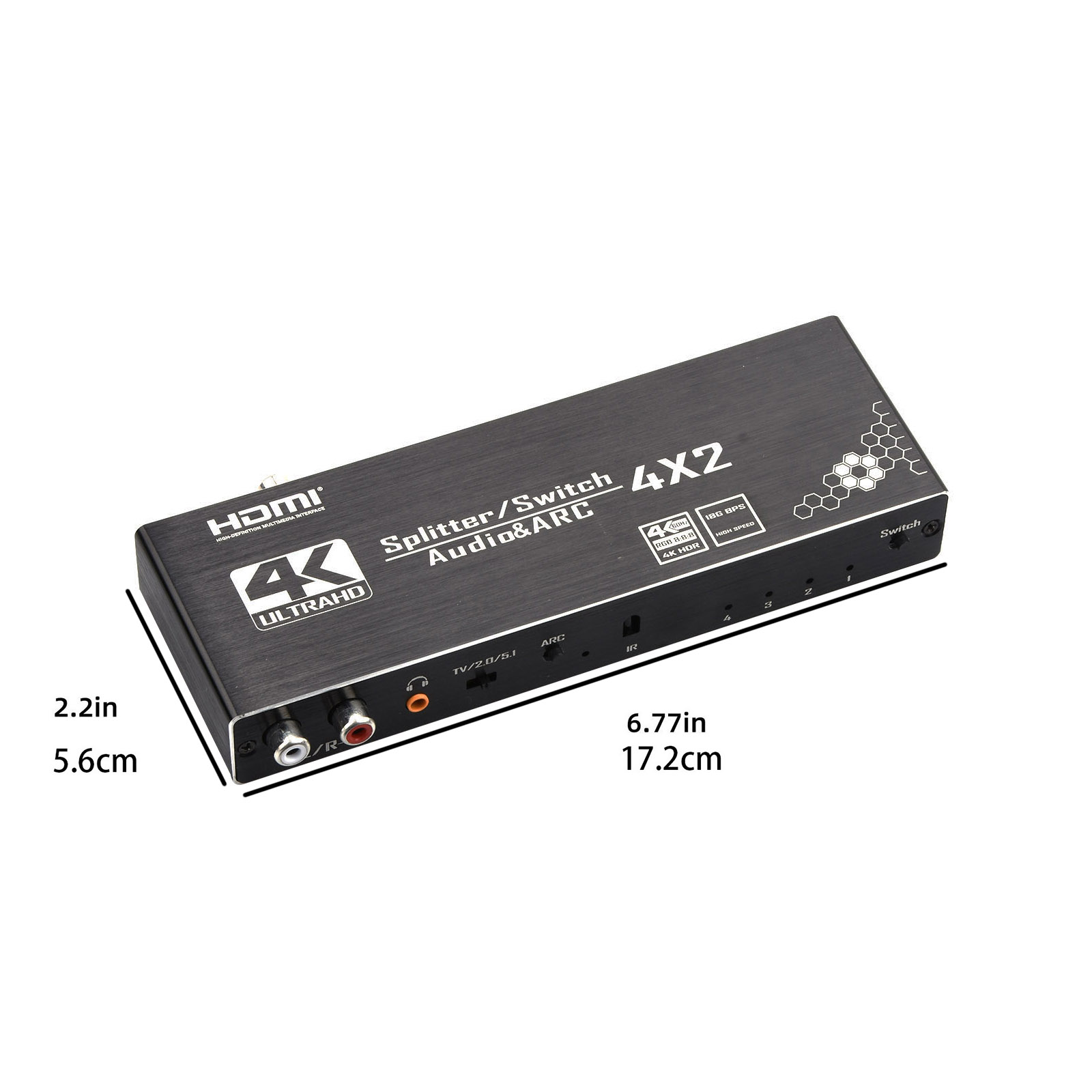 Unbranded HDMI Switch 4X2 With Audio Separation 4 in 2 out 4K@60Hz HDMI Switcher with ARC