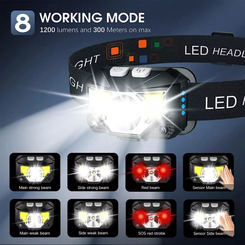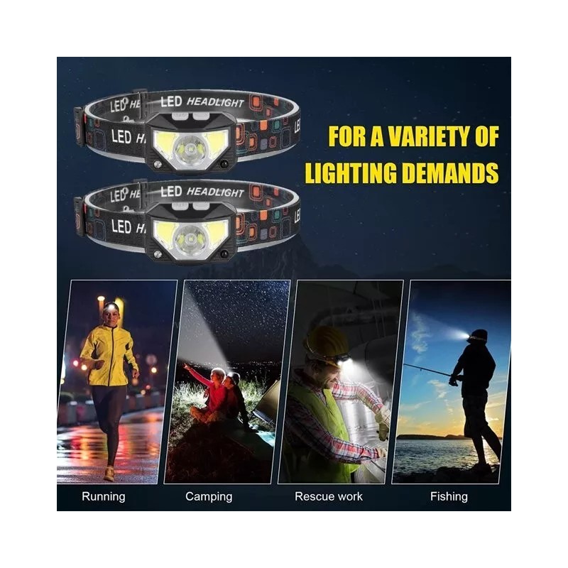 Unbranded Headlamp Flashlight 1200 Lumen LED Rechargeable Headlight White Red Light - 2pc
