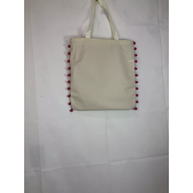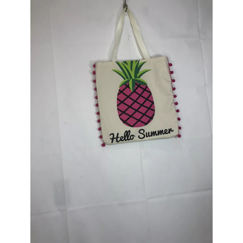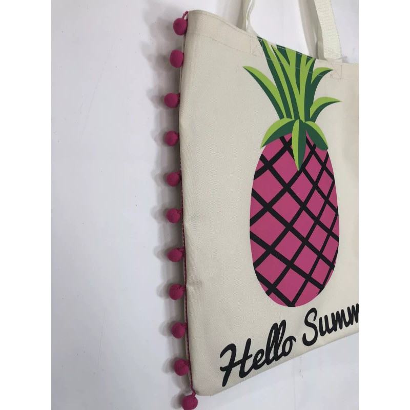 Unbranded Hello Summer Pineapple & Pom-Poms Graphic Canvas Cotton Multipurpose Tote Bag