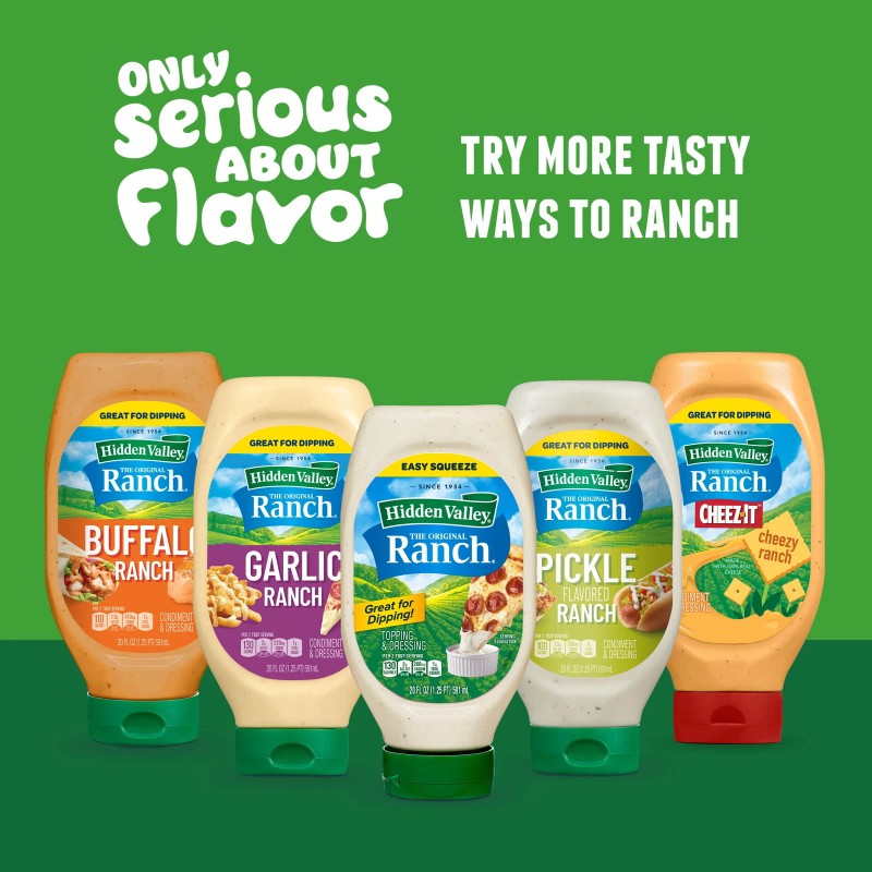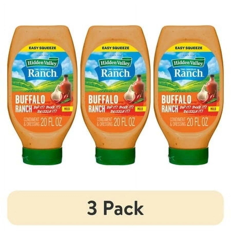 - DINNER MADE EASY: Add instant flavor to your favorite salad, meal or side dish with a touch of creamy Hidden Valley® Buffalo Ranch Topping and Dressing in a convenient easy squeeze bottle