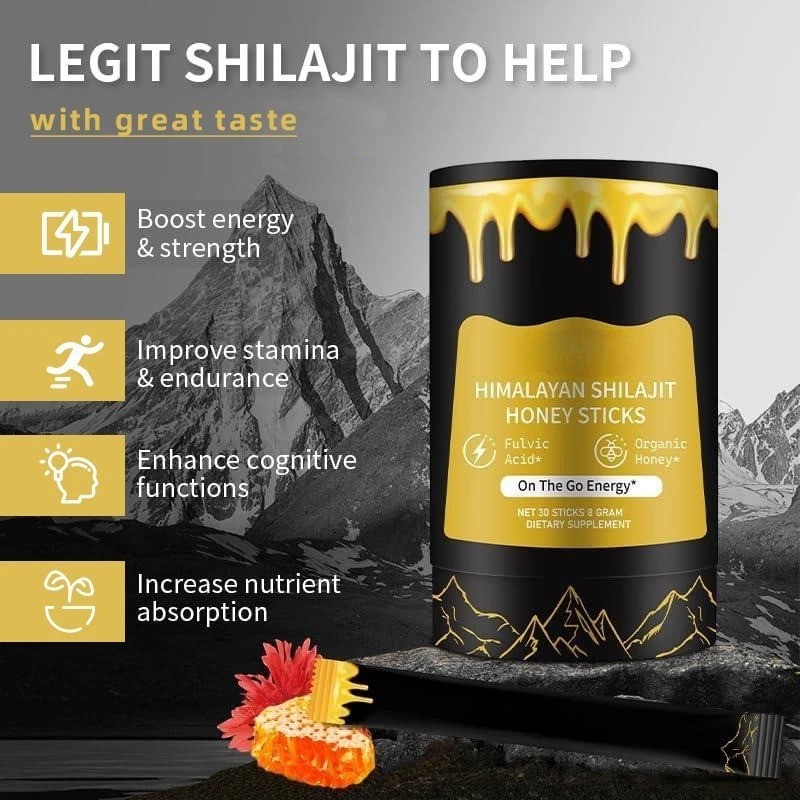 Sourced from the high-altitude Himalayan mountains (18,000 ft+), this Grade-A Shilajit is known for its purity, potency, and naturally rich profile of Fulvic acid and 85+ essential minerals. Our honey sticks offer a mess-free, delicious, and convenient way to add this ancient superfood to your wellness routine — no resin, no capsules.