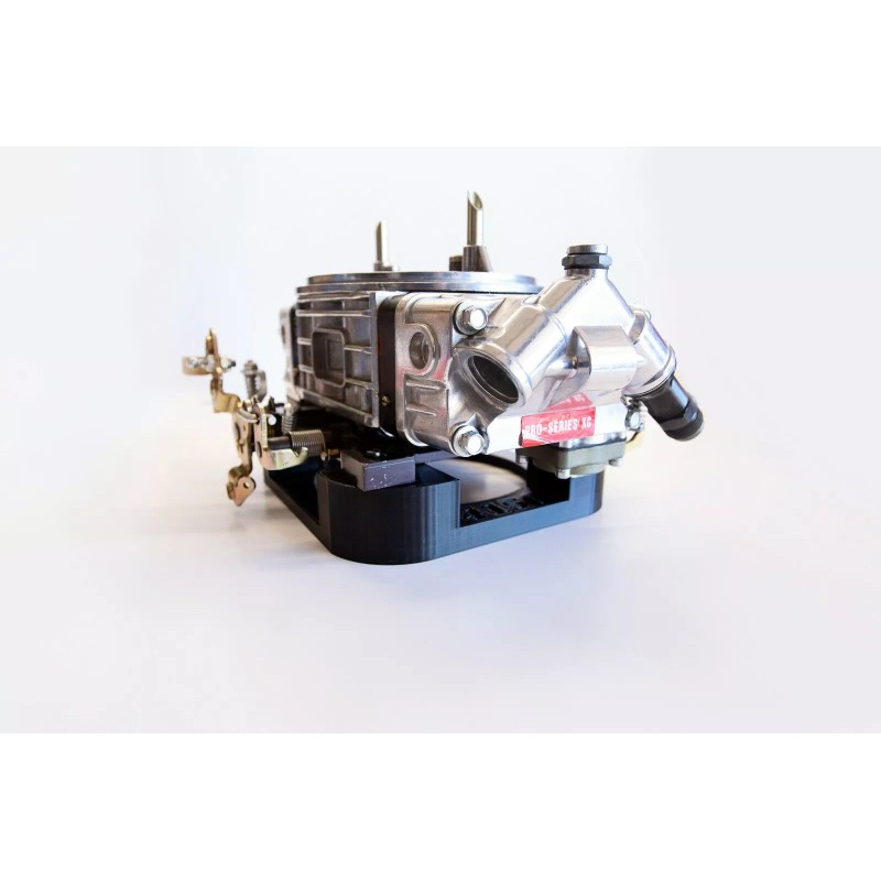 This carburetor work stand features an open center and makes working on your carburetor much easier. This will hold your carb up off the workbench area. To where linkages and butterflies work freely. Settings and adjustments are much easier to accomplish.