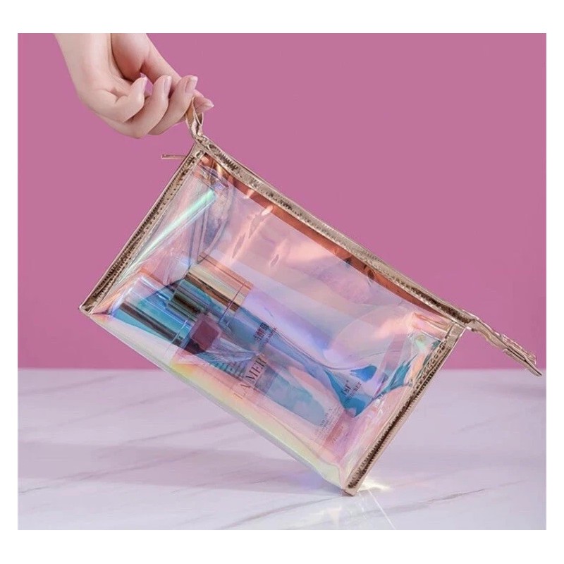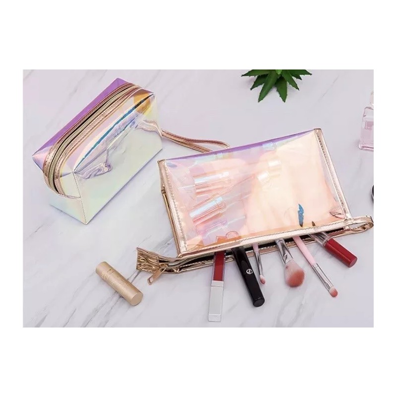 These trendy holographic makeup bags have many beautiful iridescent colors! They will keep your beauty products safe and styling. The clear design makes it easier to check the content of the bag.