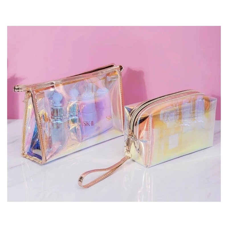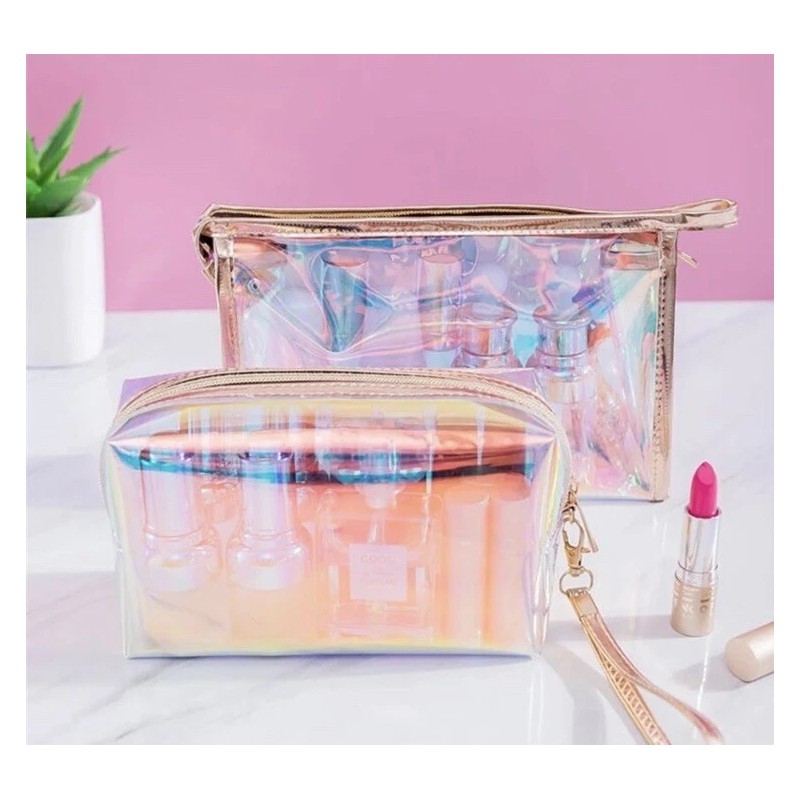 Set of 2 Holographic Makeup Bags Clear Iridescent Cosmetic Pouch Organizer Toiletry Case. Condition is New. Shipped with USPS First Class. Bags will ship flat.