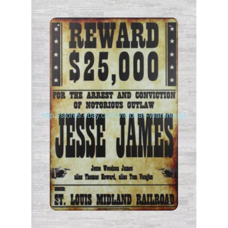 Unbranded home accessories Reward $25,000 Jesse James metal tin sign