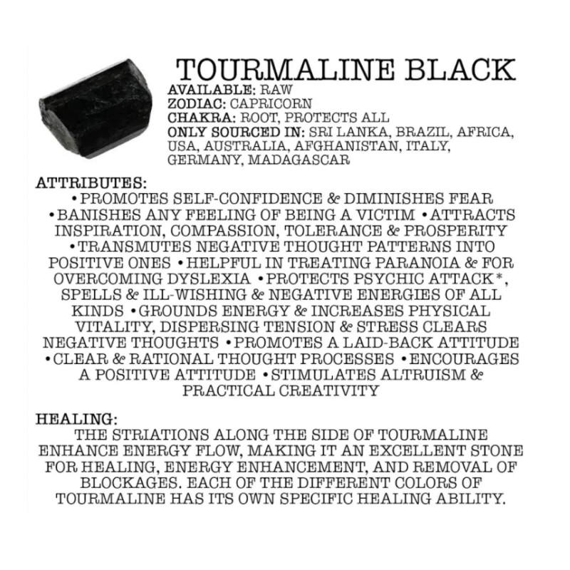 •Glass bottle with wooden lid, includes a piece of Black Tourmaline Gemstone