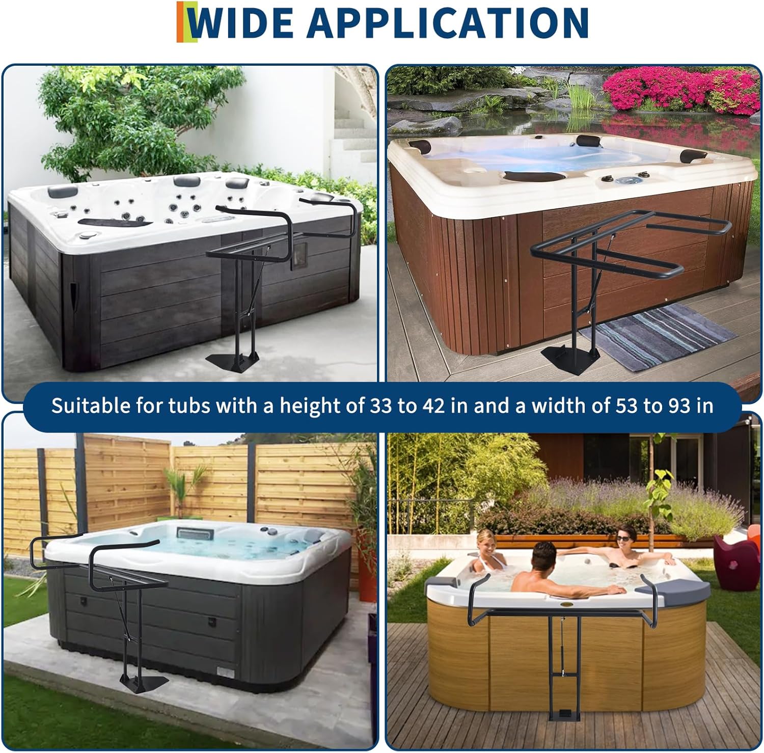 - 【Adjustable Height】Spa cover lifter features an telescopic bracket with adjustable heights from 30'' to 40", and width 53''-93'', enabling you to find the ideal height to fit your bathtub in a secure and stable way. You donot more worry about getting the wrong size.