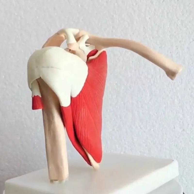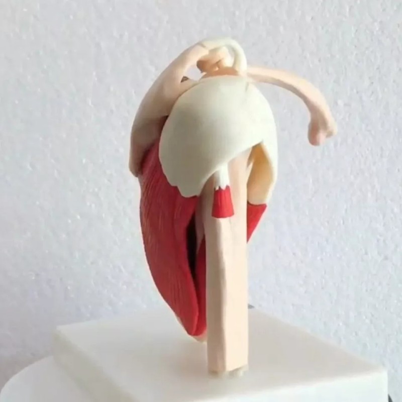 - Made of washable, high-quality PVC,on base.Demonstrating the shoulder joint anatomy and muscles of the rotator cuff to patients and students.The detailed model demonstrates the infraspinatus, teres minor, teres major, subscapularis and supraspinatus muscles; acromion, clavicle, humerus and scapula bones; plus the related ligaments and tendons.This allows demonstration of the rotator cuff's role in both fixing the humerus in the glenoid cavity and depressing it during elevation.Material: High Quality PVCSize:: 18*15*23cmWeight: 0.5 kg