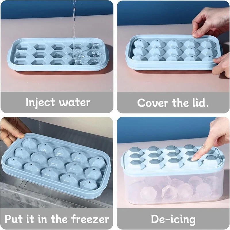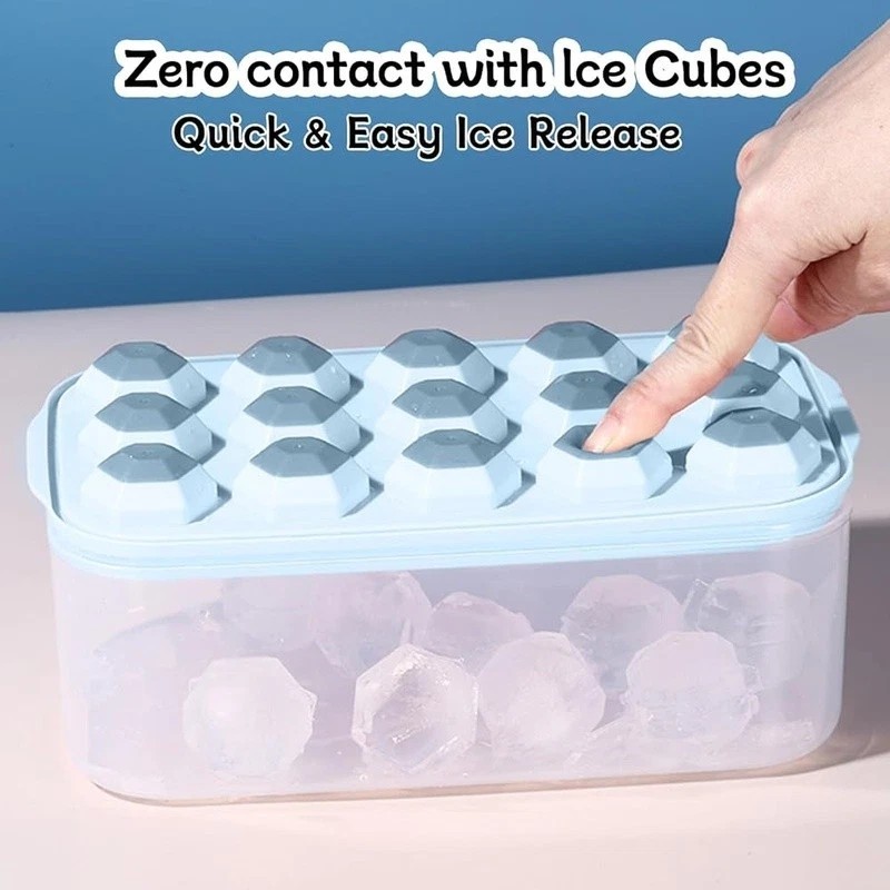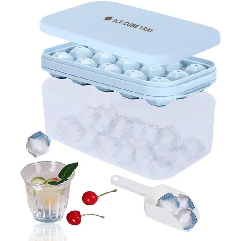 Unbranded Ice Cube Tray W/ Lid 15 pcs Hexagon Ice Ball Maker Flexible Silicone Bin Scoop