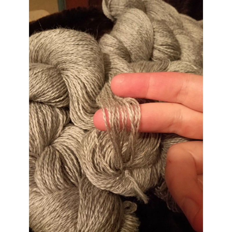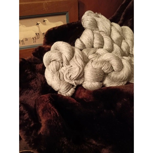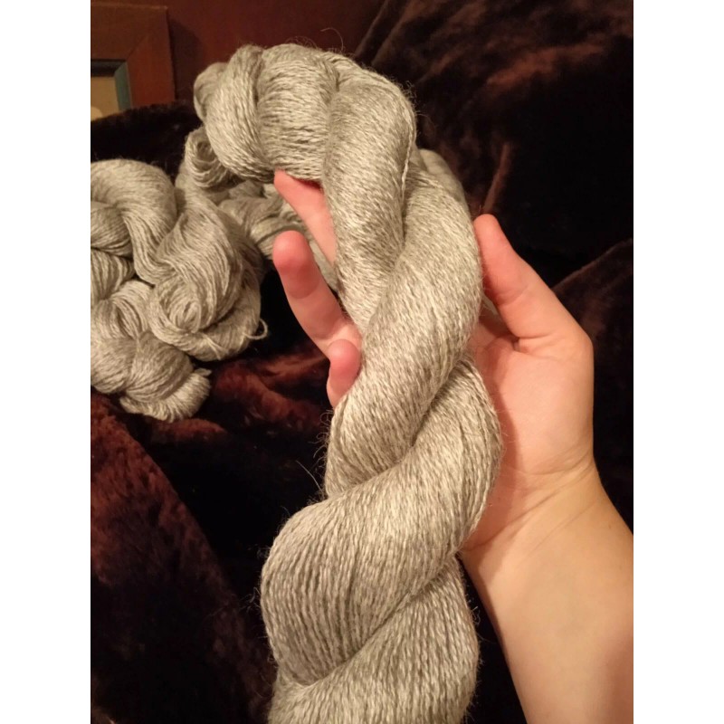 Icelandic/Merino/Silk 2 ply Fingering 4oz skein undyed natural gray color. Condition is New.  Just in from The Other Side Farms! Beautiful yarn made from Gurdy Run Woolen Mills.  This yarn has the finished look you can expect from professionally done machine yarn, but it retains its homemade origins.  It has a blend of 65% Icelandic wool, 22% Merino wool top, and 13% silk.  The Icelandic Wool comes from the sheep here on the farm, skirted by yours truly.  I then package it all up and send it off to the mill, with my desired blend.  The blend of Icelandic wool, Merino top, and silk is the brainchild of my search for the yarn that balanced perfectly between softness, drape, while retaining a crisp stitching definition (it looks amazing done with any kind of cabling).  I've been offering this product now for several years and have gotten back very positive feedback from my customers.  I am thrilled, because it has the almost elven quality, like what Tolkein imagined when he was thinking of a fiber type for his books.  Icelandic is lightweight, but is rather more textured and can be rough, although it carries a natural sheen to it as well.  Merino is superfine, but heavy.  Silk is, well, silk- lightweight, fine, soft, shiny, strong and durable.  Added together, it's a match made in Heaven!  It is soft, and for my personal taste, I would put it next to skin.  It doesn't have the feeling of melting into your skin, but it is soft.   Skeins are 450 yards each, 2 ply.  The color is difficult to capture.  It is natural, undyed gray!  This color, in my opinion, dyes the best.  It gives you a beautiful vividness to all your colors. If you have any questions, please ask! Thanks for stopping by!