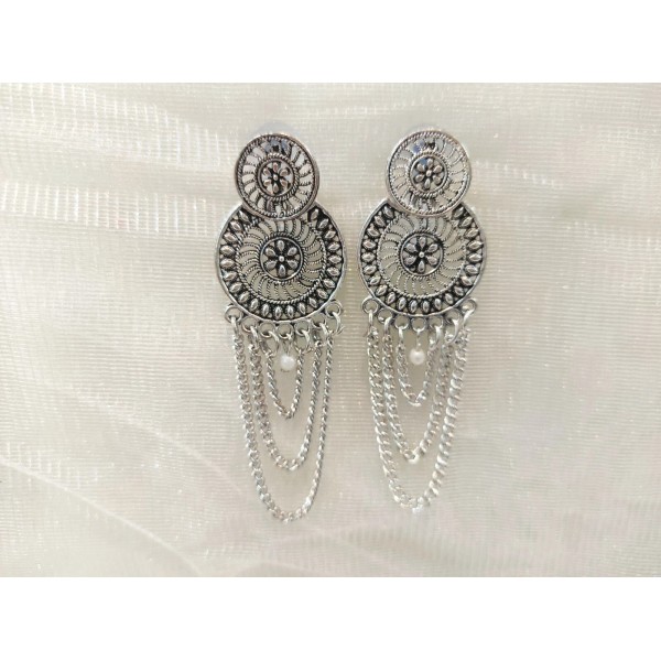 Unbranded indian jhumka earrings- Chandabali Earrings oxidized metal precision crafted