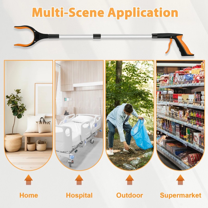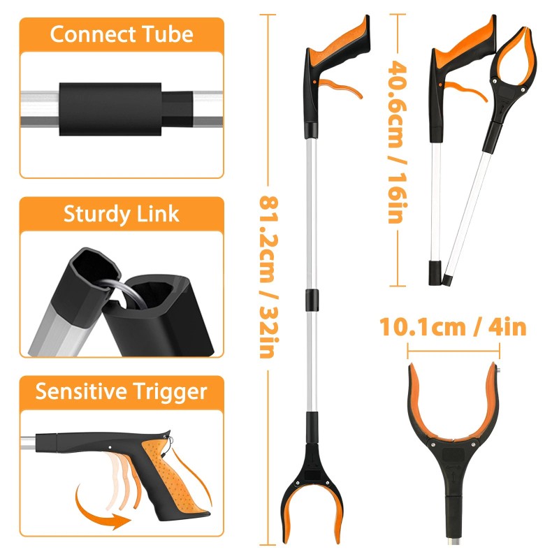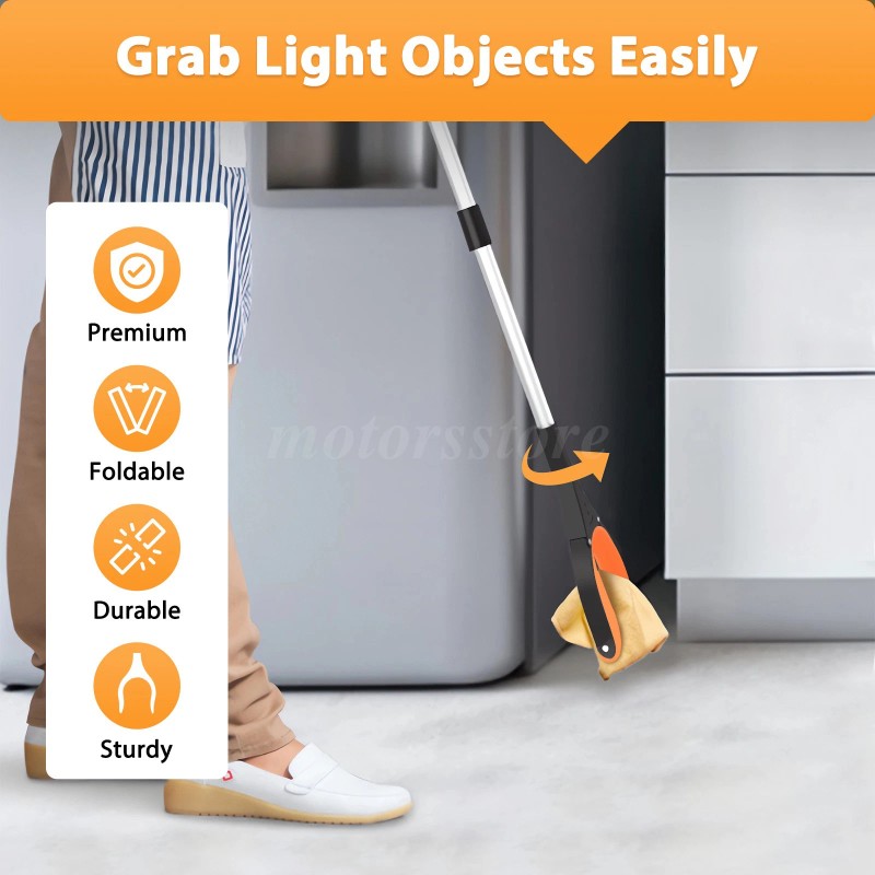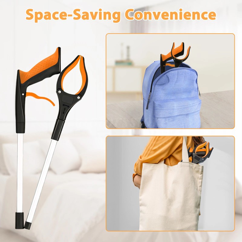 Features: Extendable grabber tool, foldable reaching aid