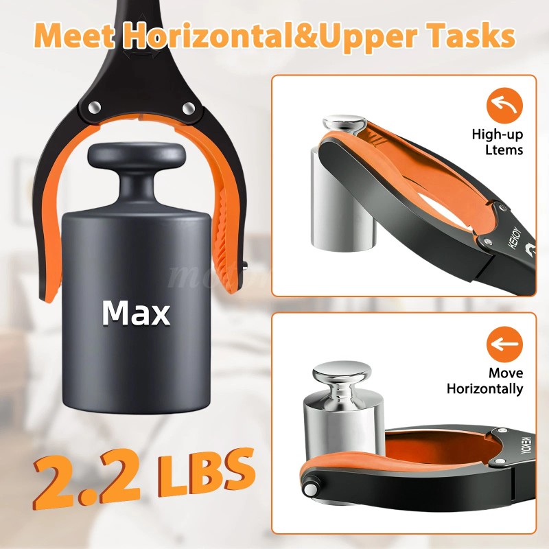 【Superior to Traditional Grabbers】Upgraded wide-lock button keeps jaws steady, while the 4-inch rubber-tipped jaws with grooves ensure a firm hold.
