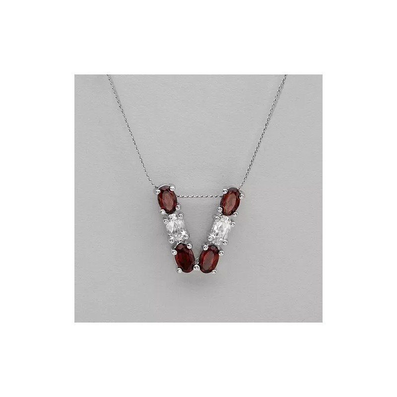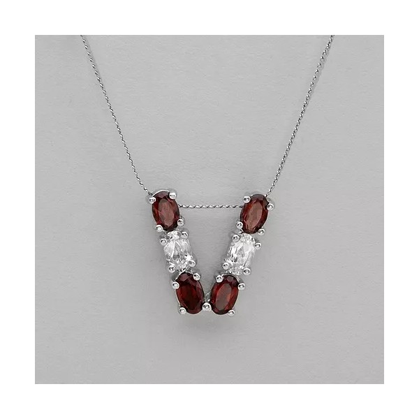 Unbranded Initial V letter necklace With 1.10ctw Garnet & Topaz in 925 Sterling Silver 16"