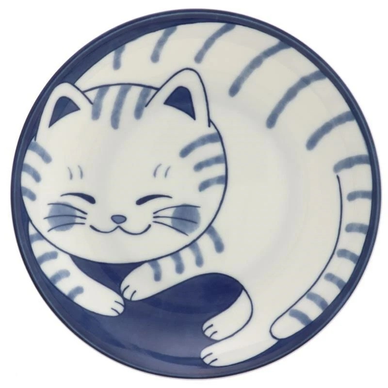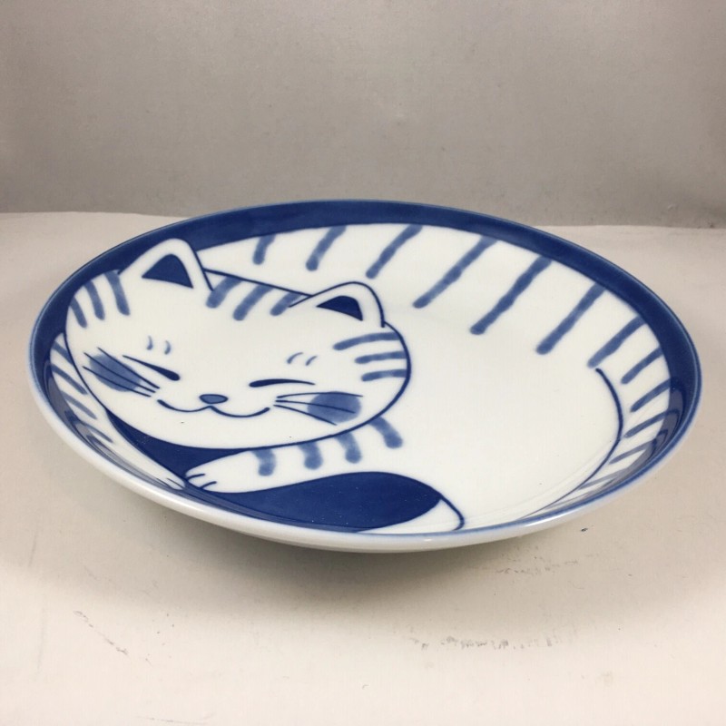 Unbranded Japanese Dinner Dish Plate 7.75"D Porcelain Affectionate Tabby Cat Made in Japan