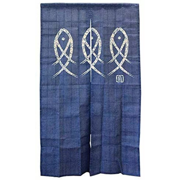 Shown here is Japanese"SAKANA" fish pattern Noren curtain. The noren is made of 100% polyester and can be used as a tapestry for anywhere in the house. The curtain measures approx. 34" in width and 59" in length.