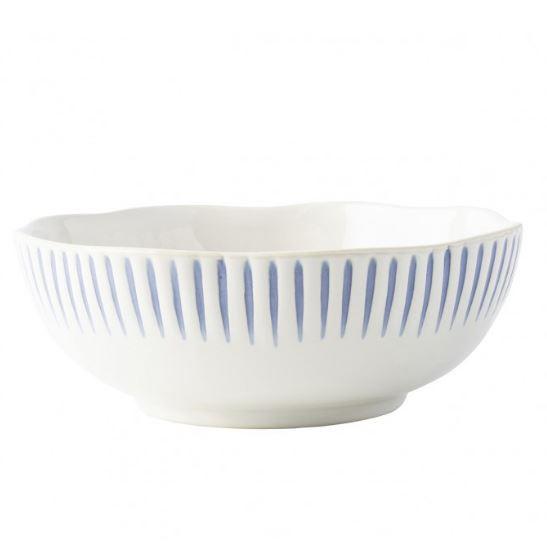 From our Wanderlust Collection - Equally stunning and simplistic, radiant stripes in breezy shades of blue adorn this dinnerware collection. With a wide mouth and shallow depth, this coupe shape bowl is perfect for grains, pasta or entre salads.