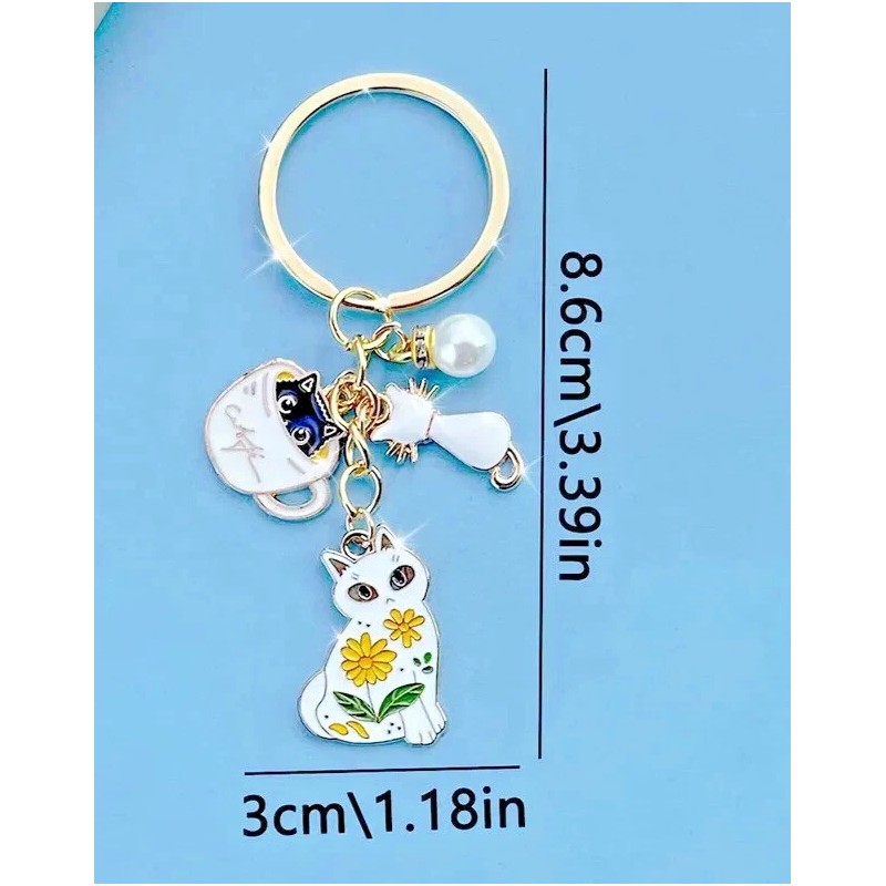 Unbranded Key Ring Cartoon White Cats Charm Keychain Enamel Alloy Backpack Purse Bag Car