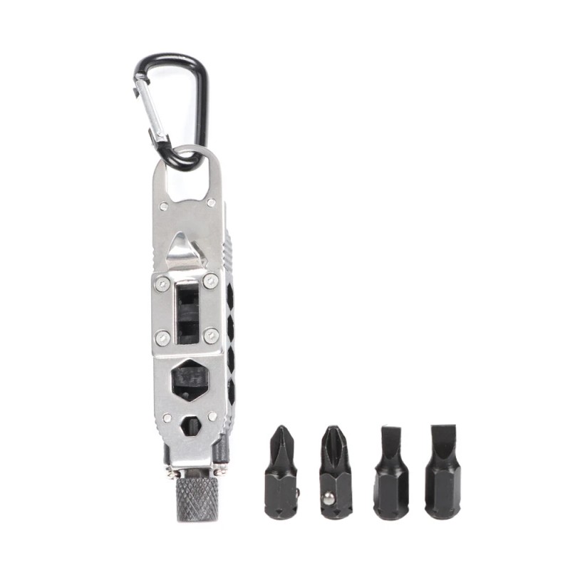 *1.Function: a small and large screwdriver, a large and small Phillips screwdriver, LED lighting (white light), two types of hexagonal swinging hands, bottle opener, quick hook.
