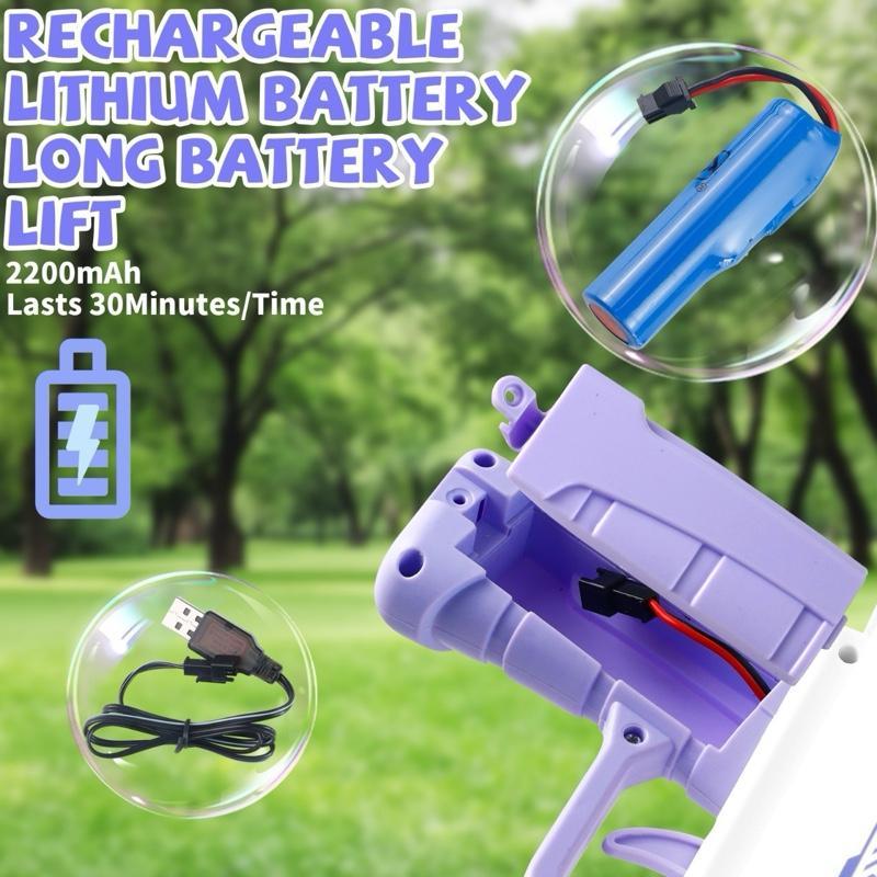 This upgraded LED bubble gun is the perfect choice for your summer activities, designed to deliver endless bubble fun. Equipped with a high-efficiency automatic solution feeding system, you simply pour the bubble solution into the included supply bag, connect it to the bubble gun, and it will automatically draw the solution, producing a continuous stream of vibrant bubbles.
